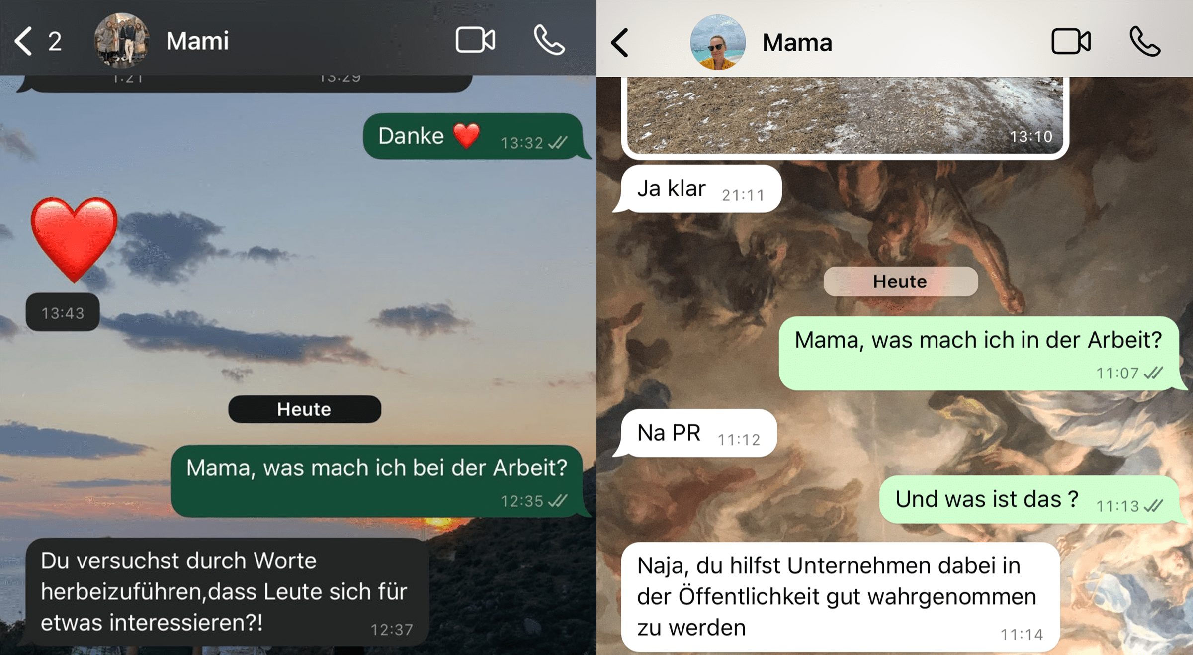 „PR ist das Kommunizieren der strategischen Ziele und inhaltlichen Schwerpunkte von Organisationen an ihre Stakeholder und in erster Linie Medien, die die Messages dann an eine breitere Öffentlichkeit weitergeben. Weißt, was ich mein, Mama?“, Ja, nein.