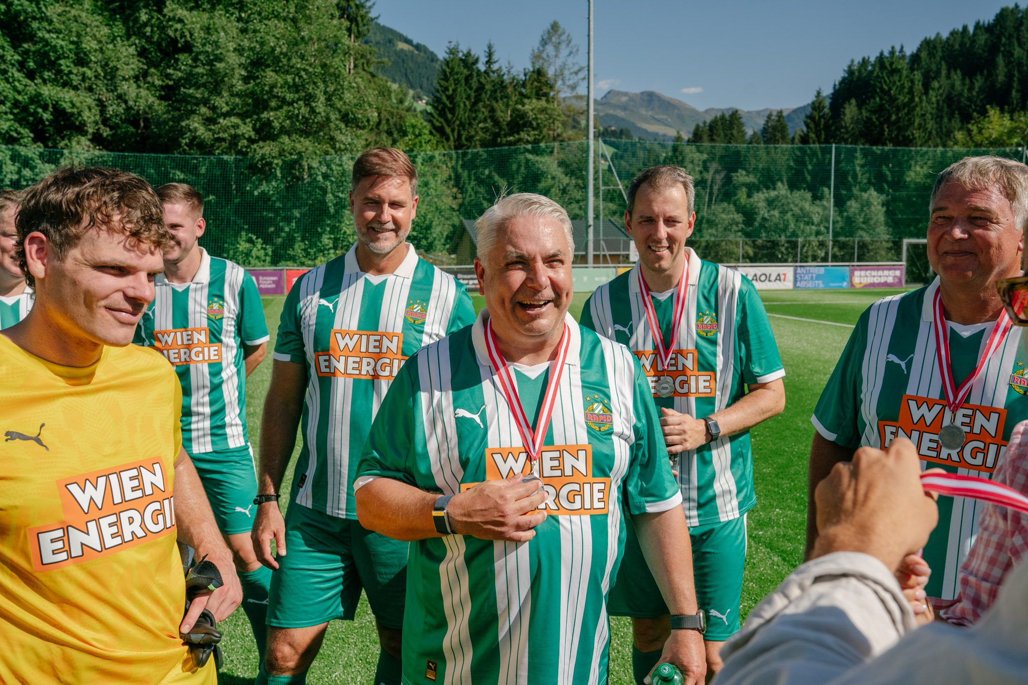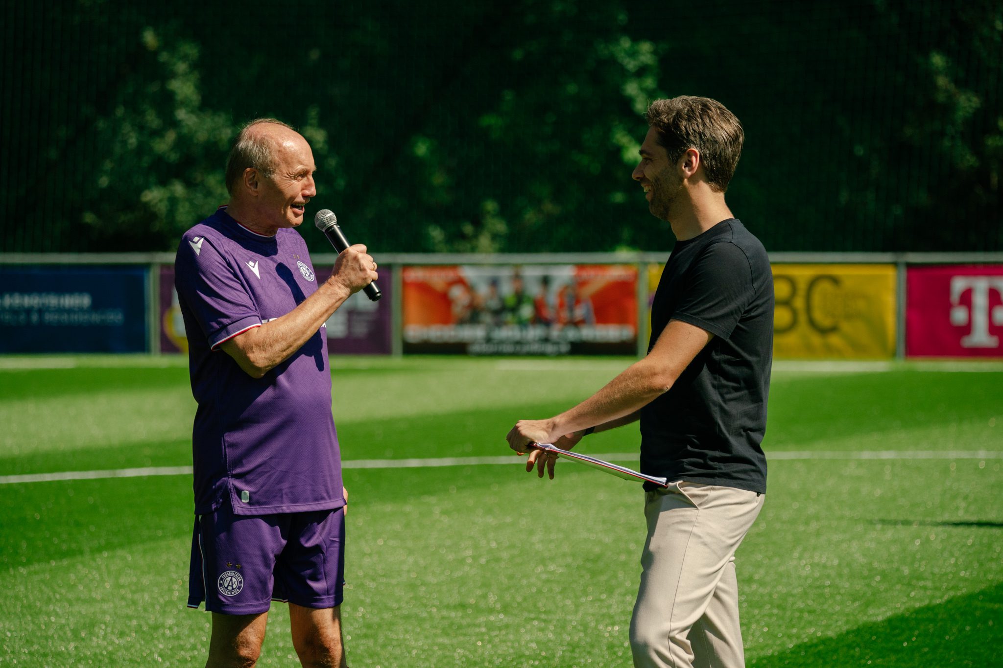 “It’s great fun, and it’s a very even match. I’ve got a special setup — one half for Austria, one half for Rapid — I like that! I’m also a neutral fan, and playing here with legends like Stefan, Hannes, Flo Sturm, and Wagner is just brilliant. As a football fan, I’m really enjoying every minute — I’d happily play the full 90.”